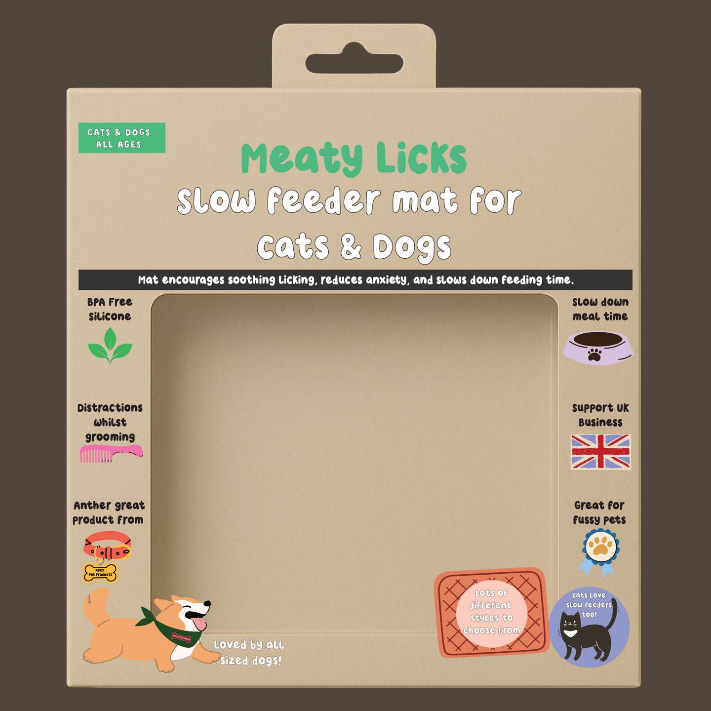 A calming enrichment tool with a cute floral twist. The Flower Power mat encourages soothing licking, reduces anxiety, and slows down treat time. Key Features: Raised flower-shaped grooves to mentally engage your pet Ideal for peanut butter, yogurt, or wet food Aids anxiety relief and boredom reduction Made from food-grade, BPA-free silicone Perfect For: Anxious pets, enrichment feeding, crate training, bath time distractions Retail-Ready Packaging: Comes with printed belly band packaging Euro slot hole at the top for easy hanging in shops Includes barcode, product info, and usage instructions on the packaging